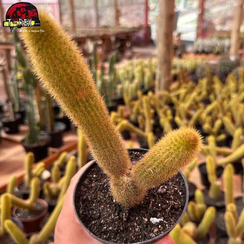 O Cleistocactos Winteri é apelidado de "Rabo de Gato" devido à sua forma única e espinhos que se assemelham ao pelo de um gato. Suas hastes verdes escuras e globosas se estendem verticalmente, criando um visual fascinante. Este cacto é resistente e fácil de cuidar, tornando-o perfeito para iniciantes e colecionadores experientes.