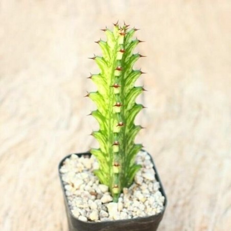 Originária das regiões áridas da África, a Euphorbia Trigona, também conhecida como "cacto africano", possui uma aparência única com seus ramos verticais e coloração verde vibrante. Sua forma intrigante e crescimento fascinante a tornam uma adição notável a qualquer espaço interno.