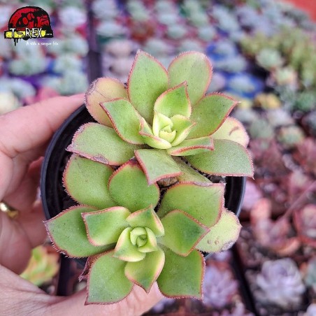 A Aeonium Kiwi se destaca entre outras suculentas devido à sua paleta de cores distintiva, que varia de tons suaves de verde e amarelo a um rosa sutil. Cada folha é uma verdadeira obra de arte, com nuances que parecem pintadas à mão. Seu crescimento compacto a torna ideal para vasos em interiores, bem como para áreas externas com luz filtrada.